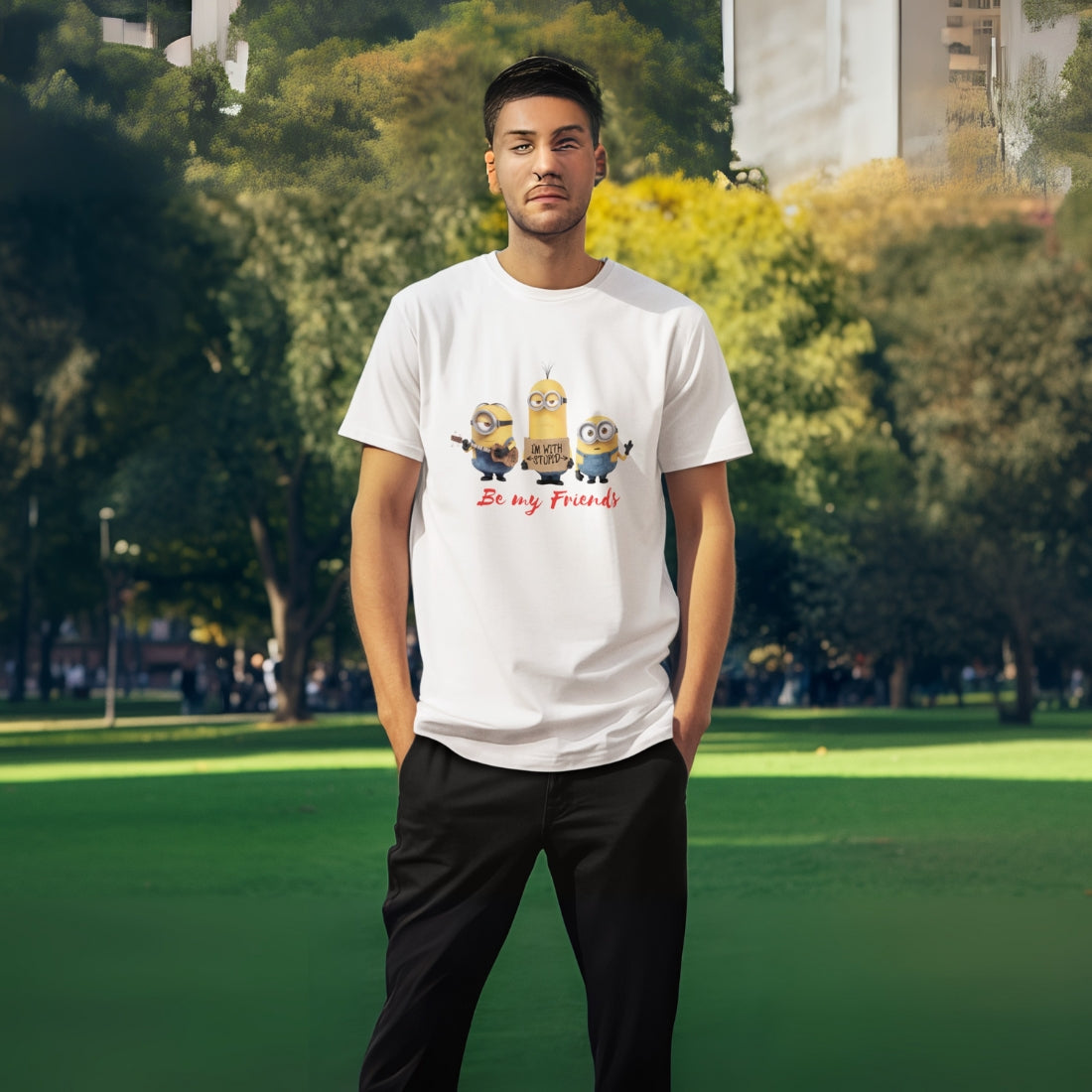 Bring on the mischief with this playful Minions T-shirt! Featuring everyone’s favorite yellow troublemakers, this design is packed with personality and humor. Made from soft, comfortable fabric—perfect for fans of all ages who love a little chaos and a lot of fun.